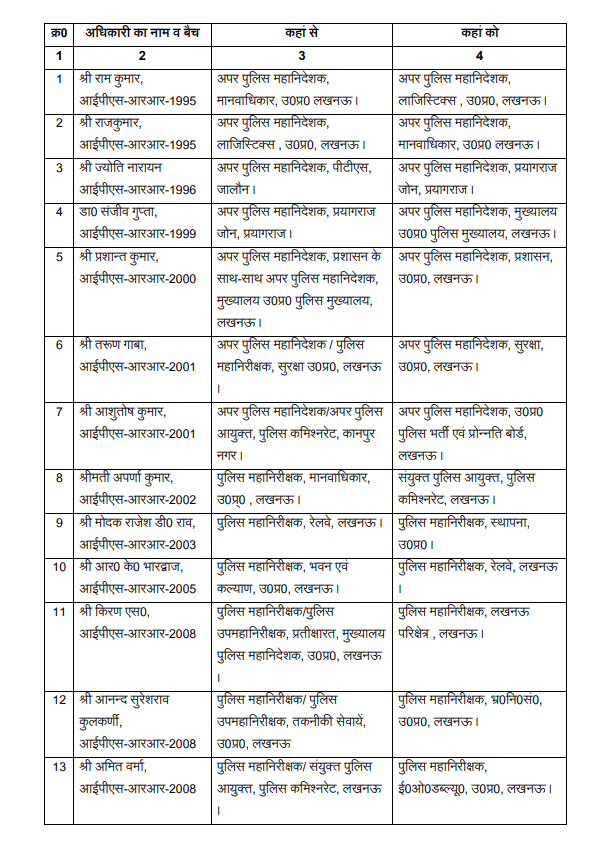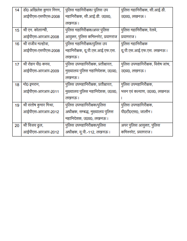 उत्तर प्रदेश सरकार ने पुलिस विभाग में बड़े स्तर पर प्रशासनिक बदलाव किया है। राज्य में कानून-व्यवस्था को और मजबूत बनाने तथा प्रशासनिक दक्षता बढ़ाने के उद्देश्य से 20 आईपीएस अधिकारियों के कार्यक्षेत्र में फेरबदल किया गया है। गृह विभाग द्वारा जारी आदेशों के अनुसार, इन अधिकारियों को उनके अनुभव और क्षमता के आधार पर नई जिम्मेदारियां सौंपी गई हैं।
