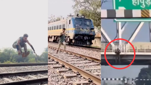 रील्स के चक्कर में जान से खिलवाड़, ओवरब्रिज से लटककर पुशअप्स लगाता युवक; ट्रेन ट्रैक पर दौड़ लगाने का वीडियो भी वायरल