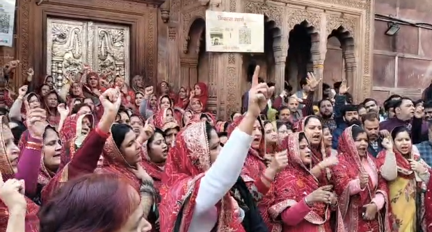 विधेयक पर गोस्वामी समाज की महिलाओं का विरोध, मंदिर परिसर में प्रदर्शन